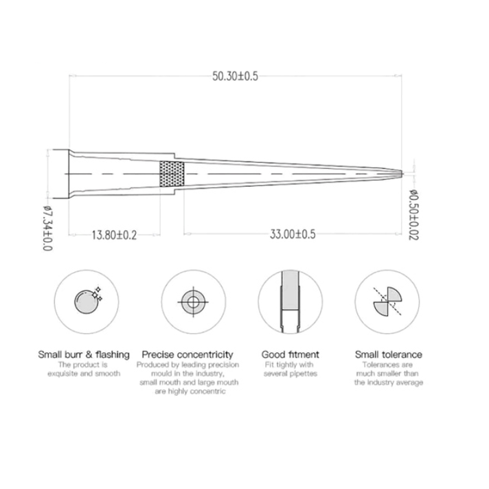 Quantity: 96 tips/Rack - 10 Racks/box - 5 boxes/Case - 50 rack/Case