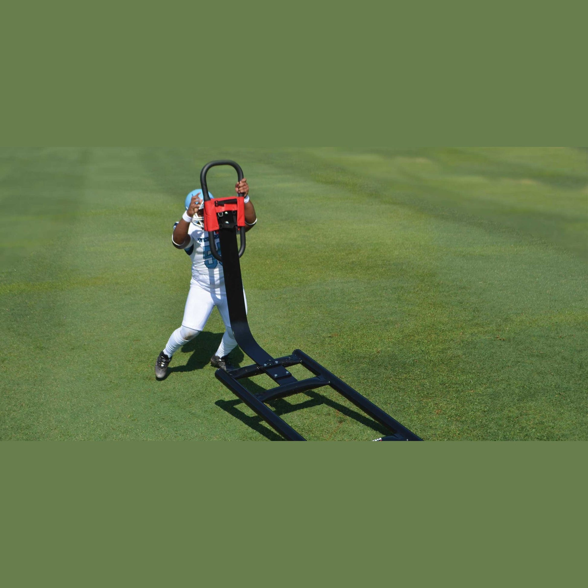 Helps develop upper and lower body strength. Large diameter round steel piping assures smooth transition over grass. Live action spring makes player work hard to take sled to ground. No sharp edges gives added safety to players. Rubber foam grip around face of sled allows for solid and safe grip while using sled.
