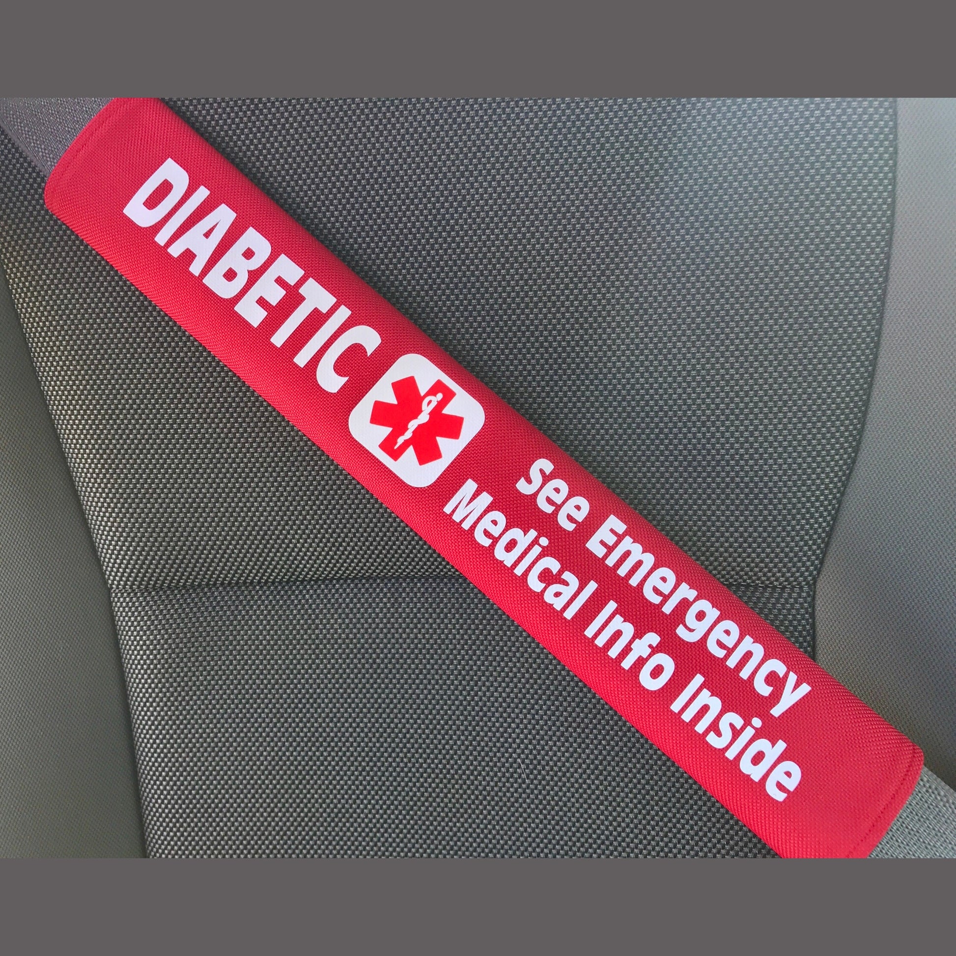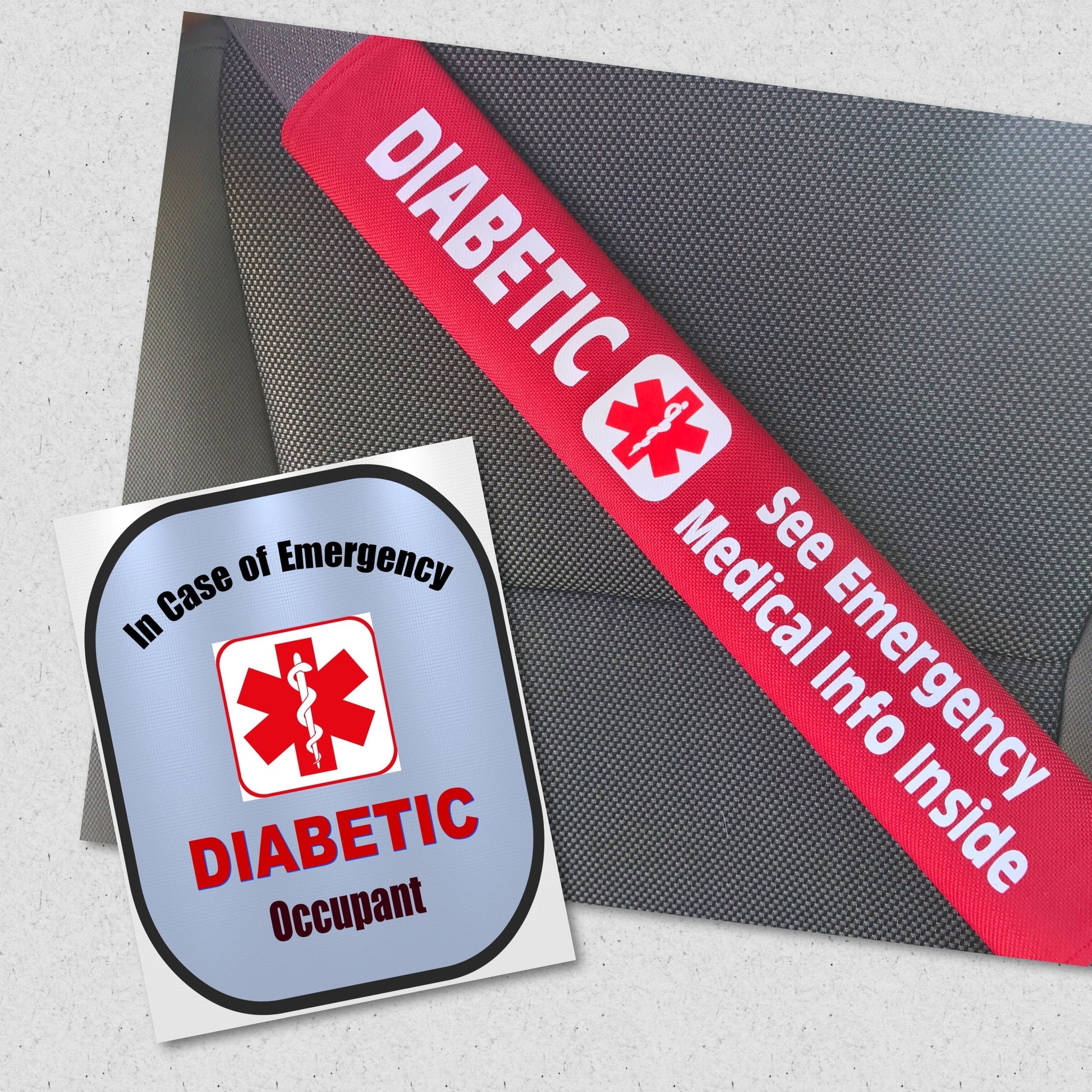 Diabetic Medical Alert Pocket Seat Belt Cover - Window Decal Set