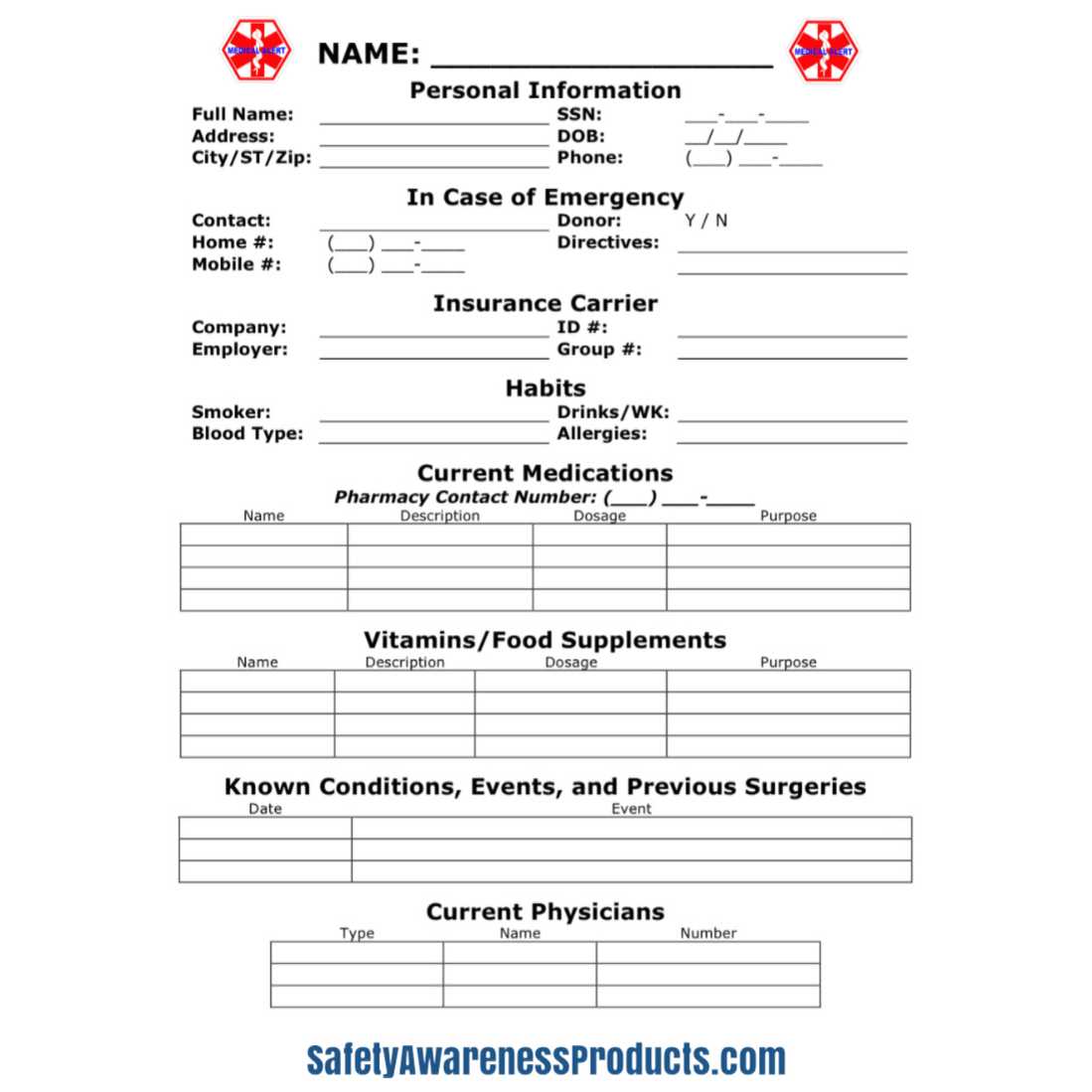 This set is perfect for any driver with a medical condition, who, in an emergency, may need to relay important medical information to police and emergency responders.  This set includes a 3x3 inch weather and fade resistant decal and an 8.5x11 inch emergency profile page to fill out and store in the glove compartment.