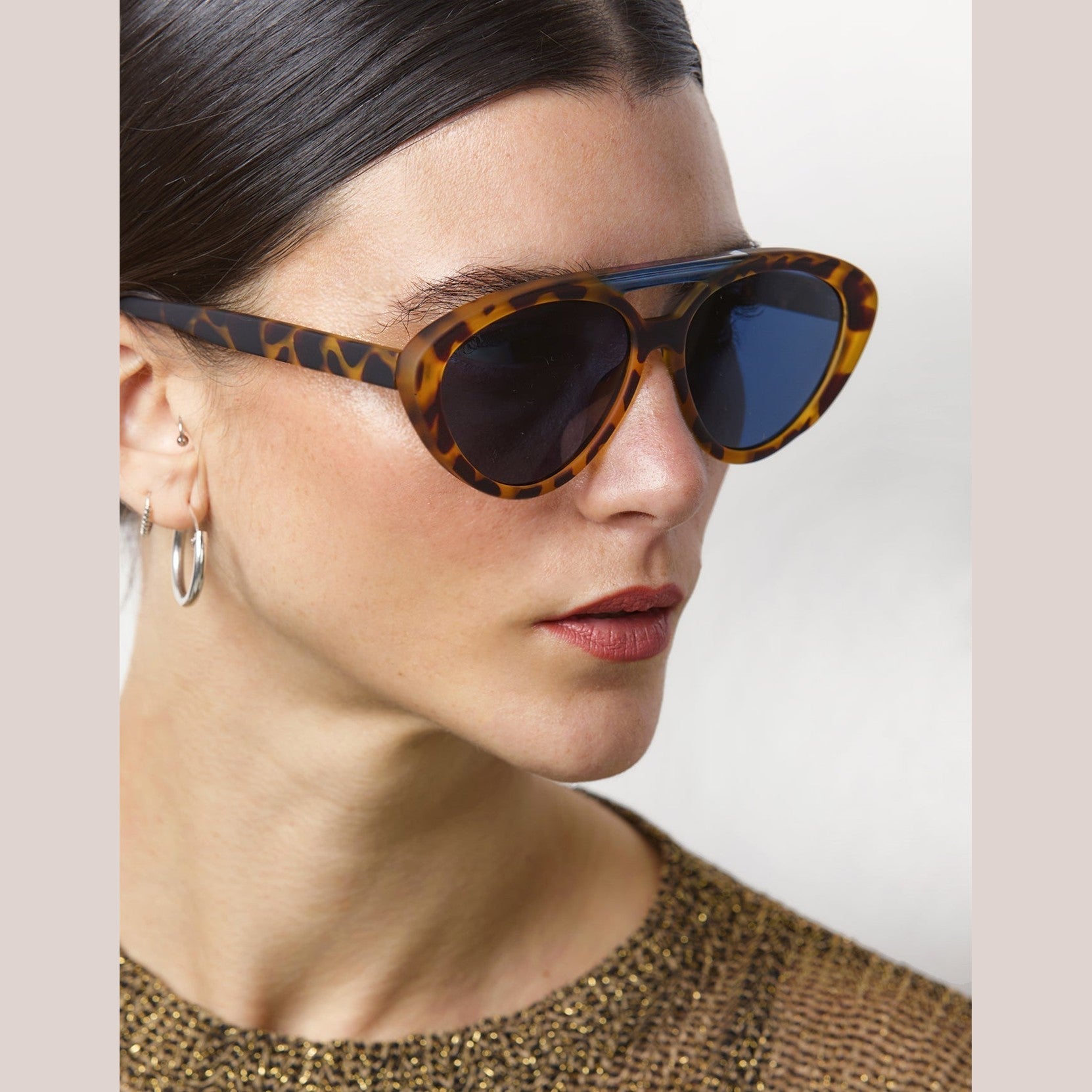 KABUKKI, a model of glasses inspired by retro aesthetics that pays homage to the iconic 80s. This design, with its Terry Richardson-style aviator silhouette, is positioned as the star accessory of the season.