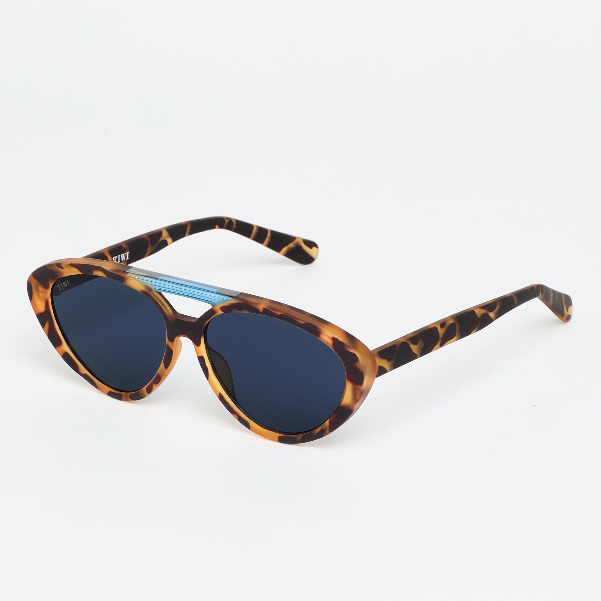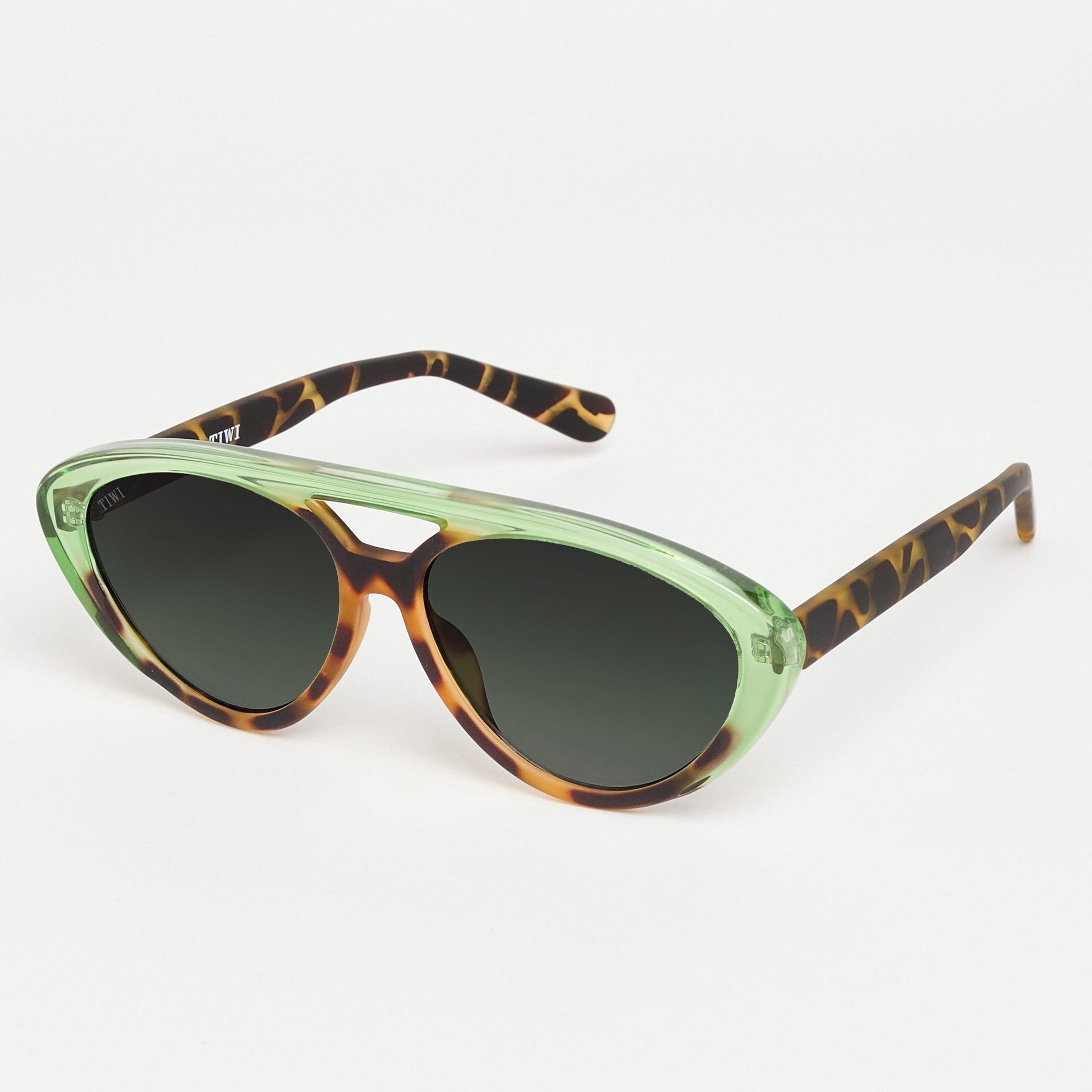 A lightweight, oval-shaped model with a double bridge that stands out for its subtle play of colour: vibrant shades such as green, blue or yellow that contrast with its already well-known green tortoise colour.