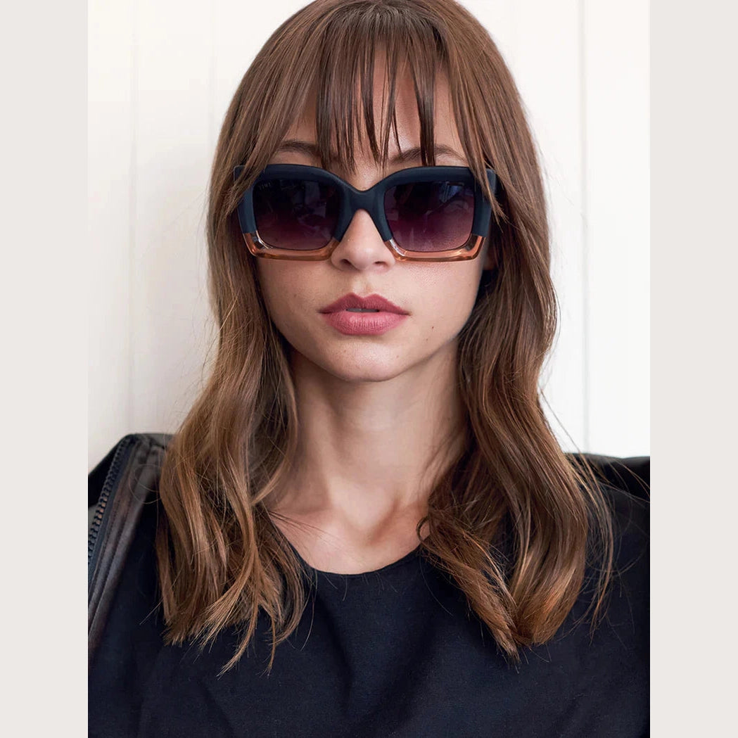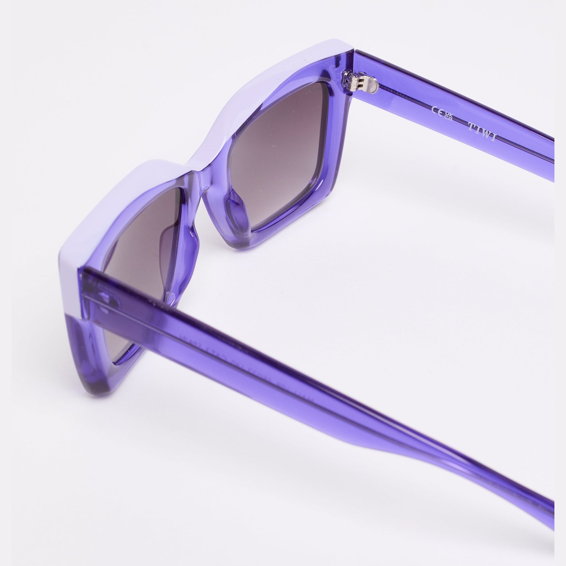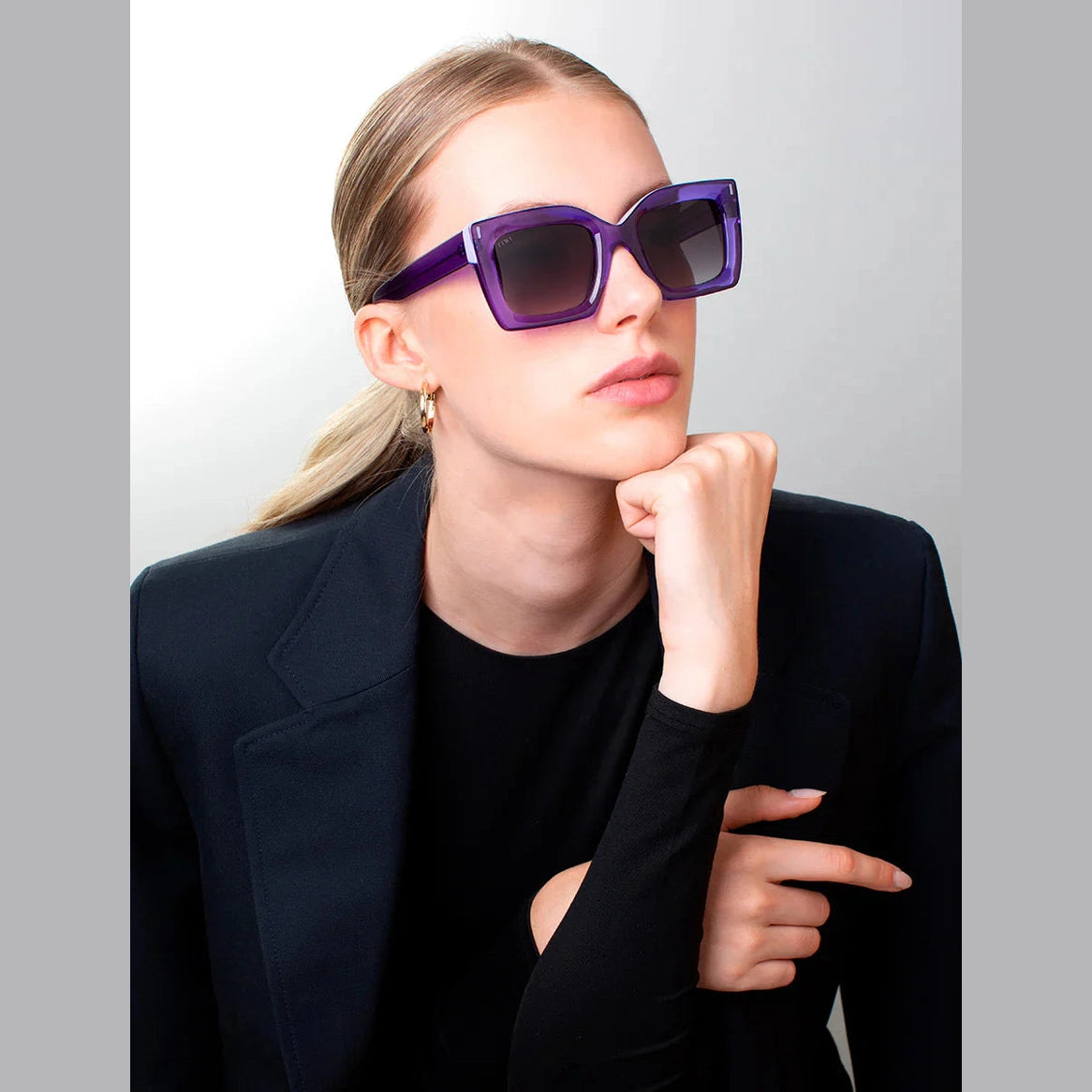 The frame is lightweight, square-shaped, accentuating facial lines. With gradient lenses that give absolute prominence to the gaze.