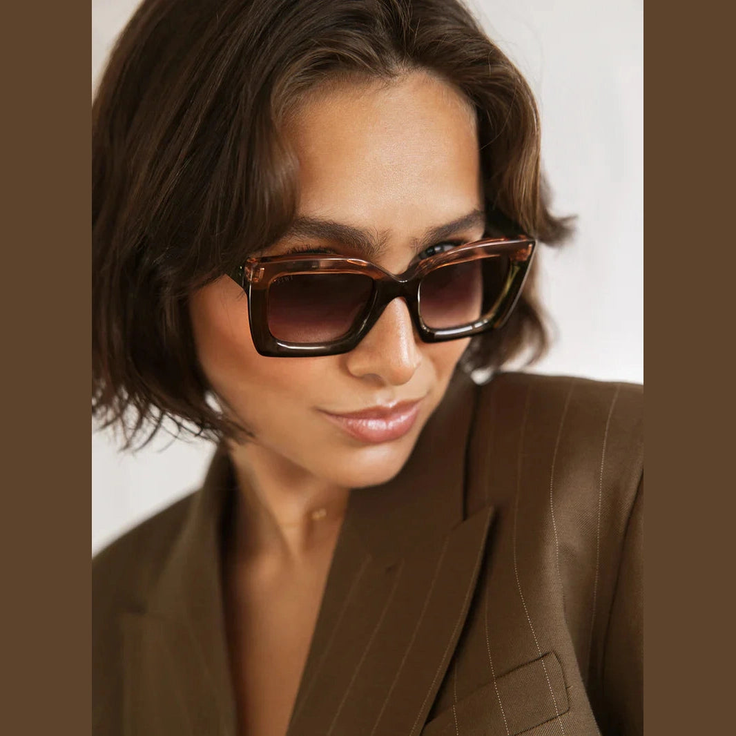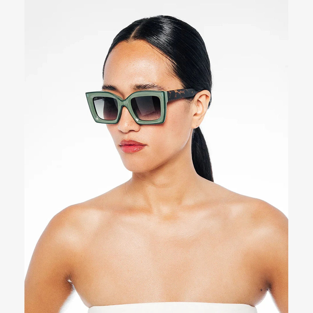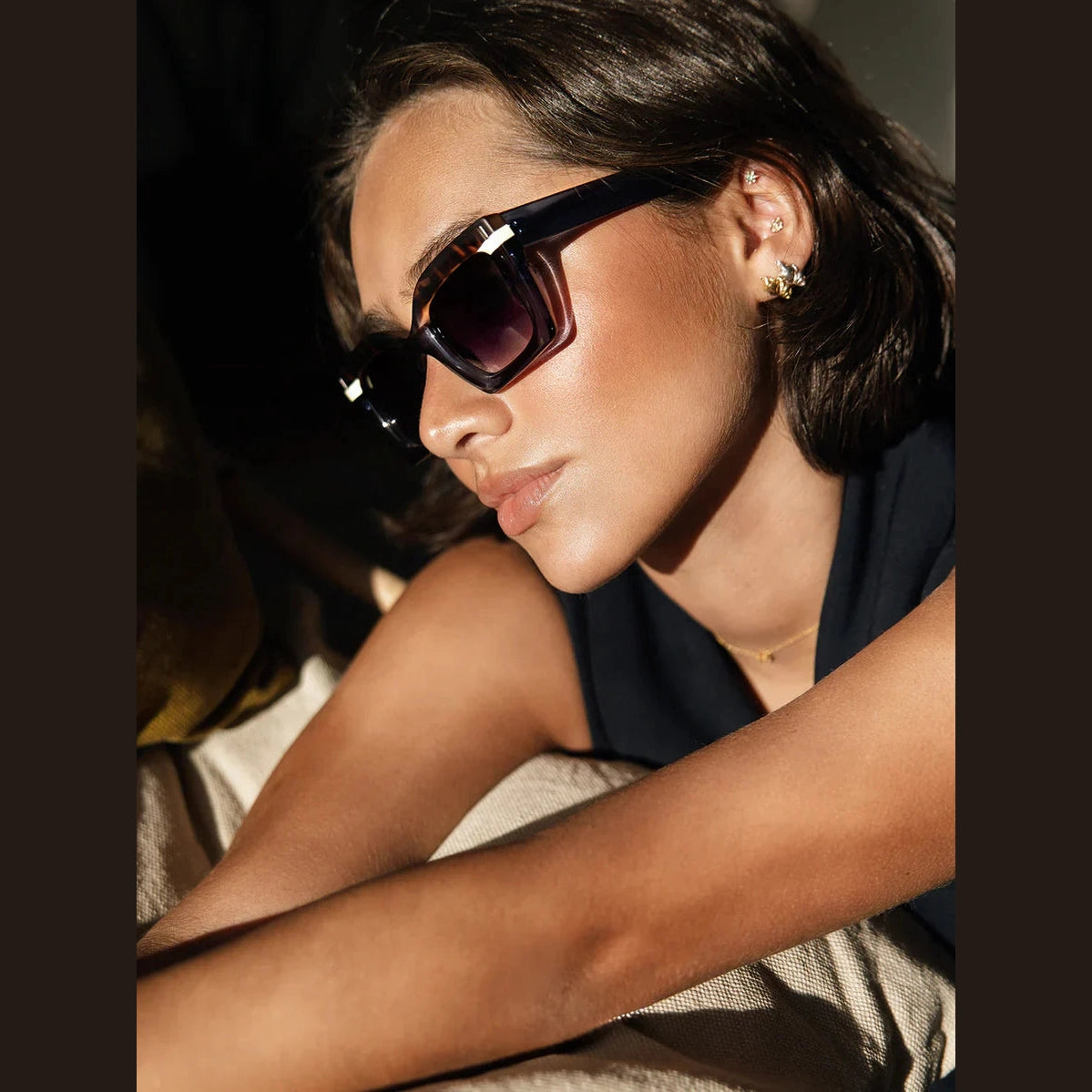 The frame is lightweight, square-shaped, accentuating facial lines. With gradient lenses that give absolute prominence to the gaze.