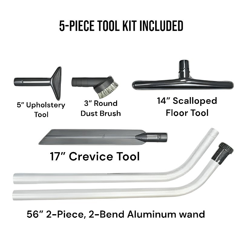 • Versatile Tool Kit: Includes a 5-piece set for cleaning various surfaces: