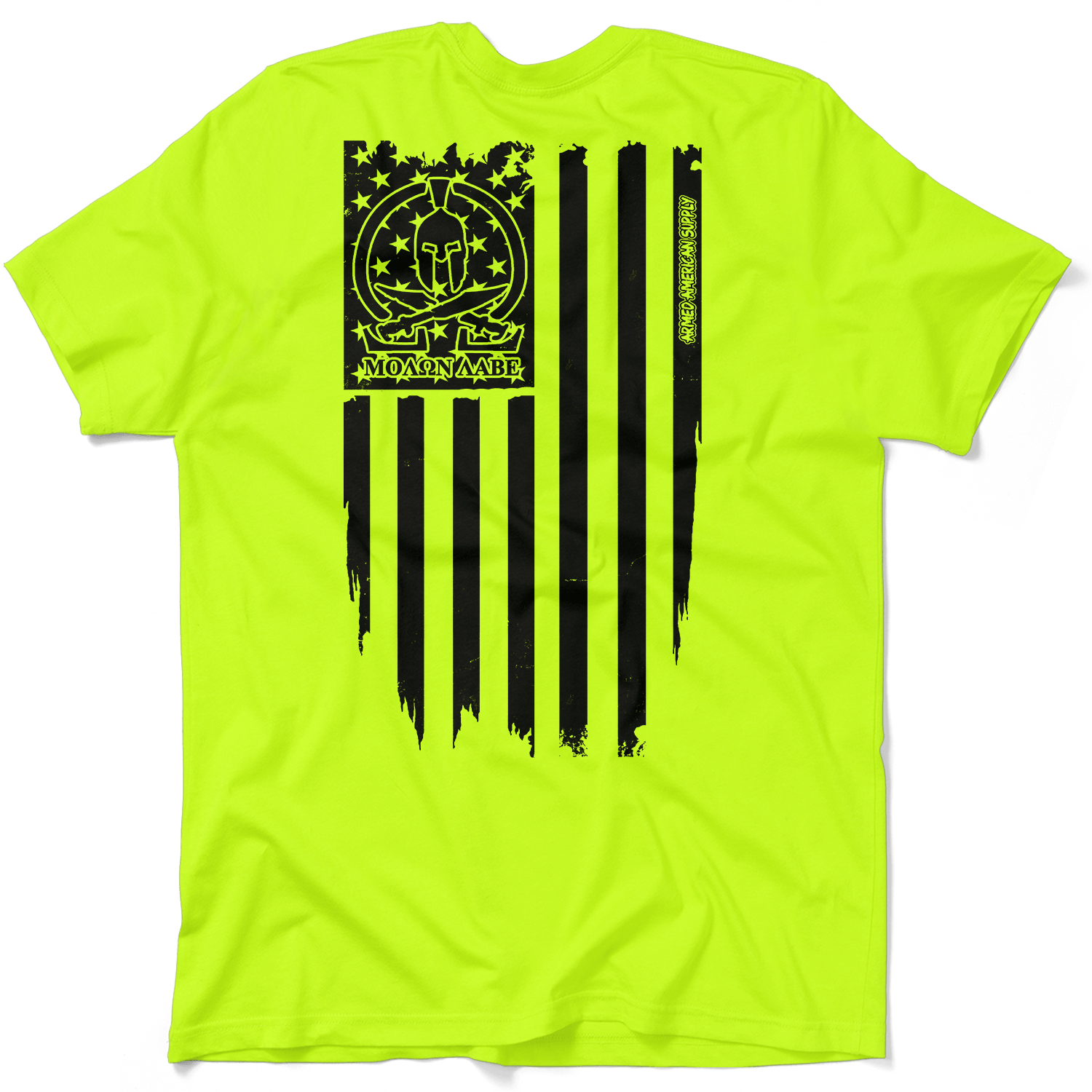 Molon Labe Ghost Flag - Safety Yellow Pocket T-Shirt