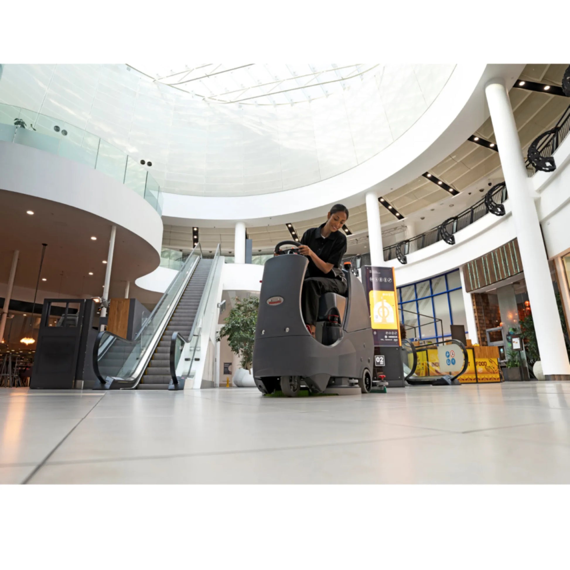 • Compact ride-on size fits in janitor closets, ideal for space-limited storage