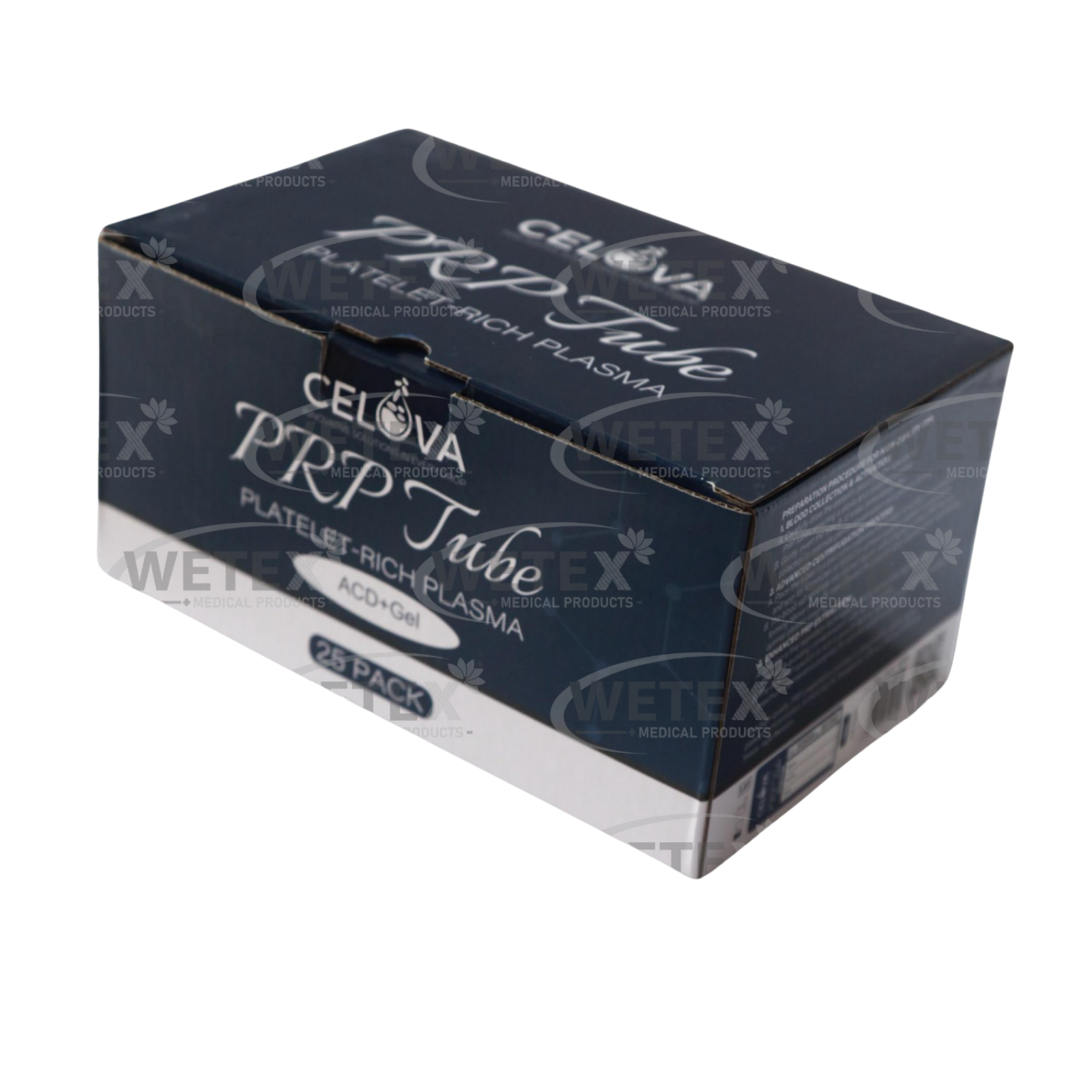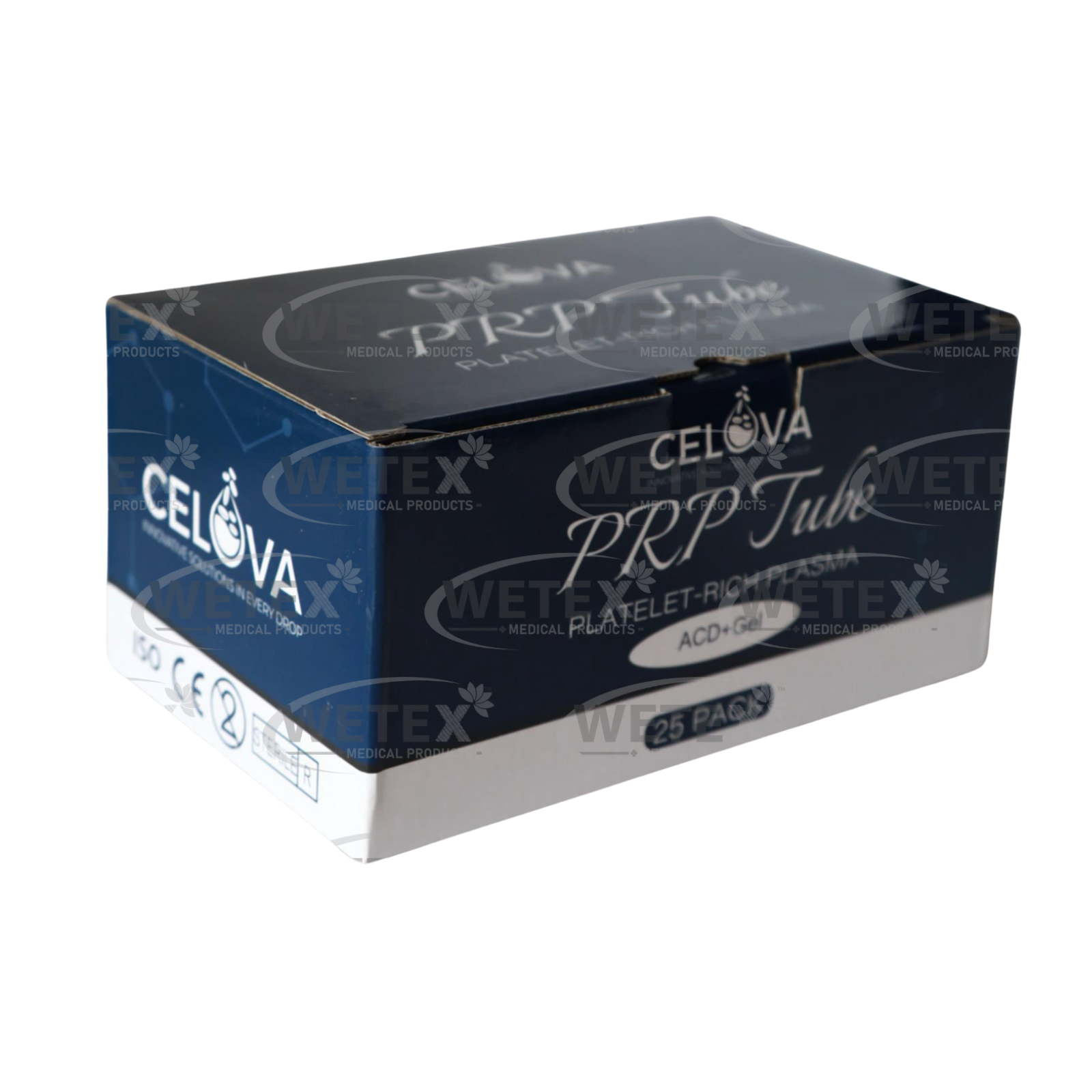 PRP (Platelet-Rich Plasma) Celova tube is a specialized medical device used to collect and process blood for the purpose of isolating platelet-rich plasma. It is typically made of glass or medical-grade plastic and is pre-filled with an anticoagulant to prevent blood clotting during processing. The tube is designed for use with a centrifuge, allowing for the separation of blood components based on density. It usually features a secure cap, a clear body for visual inspection, and volume markings for accurate measurement.