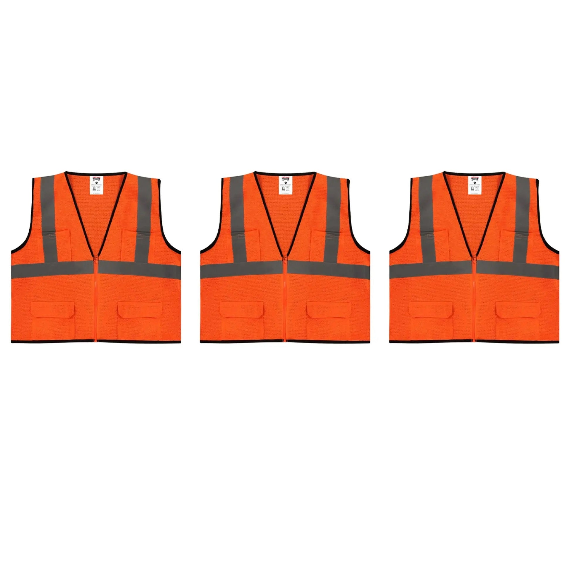 The Safety Main 05EAMO Economy Vest, Class 2, All Mesh, Hi-Vis Orange is a lightweight, breathable safety vest designed to enhance visibility and comfort in demanding work environments. Featuring a durable polyester mesh construction, two breast pockets, a half-length zipper closure, and reflective striping on the chest, shoulders, and back, this vest ensures high visibility even in low-light conditions. Ideal for construction sites, roadwork, and other high-traffic areas, it helps keep workers safe while allowing for easy movement and airflow. This vest meets ANSI/ISEA 107-2015 Type R Class 2 standards, ensuring compliance with industry safety regulations. Available in Hi-Vis Orange, in Medium to 5X-Large Sizes, and in Pack of 3.